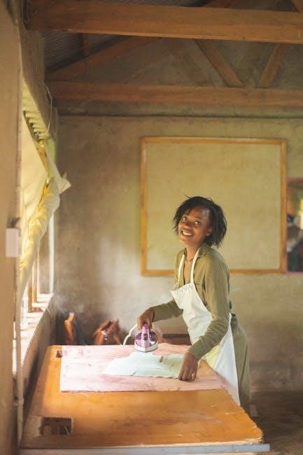 Selecting the right temperature setting is crucial for effective ironing. The Hamilton Beach Durathon Iron features digital temperature controls, allowing you to choose the perfect heat level for your fabric type. For delicate fabrics like silk or wool, use a lower temperature to prevent damage. Cotton and linen require higher heat for crisp results. Always refer to the fabric care label for specific guidance. The iron’s LED indicator will notify you when it reaches the selected temperature, ensuring optimal performance. Proper temperature selection not only protects your garments but also enhances ironing efficiency, making the process safer and more effective for all fabric types.